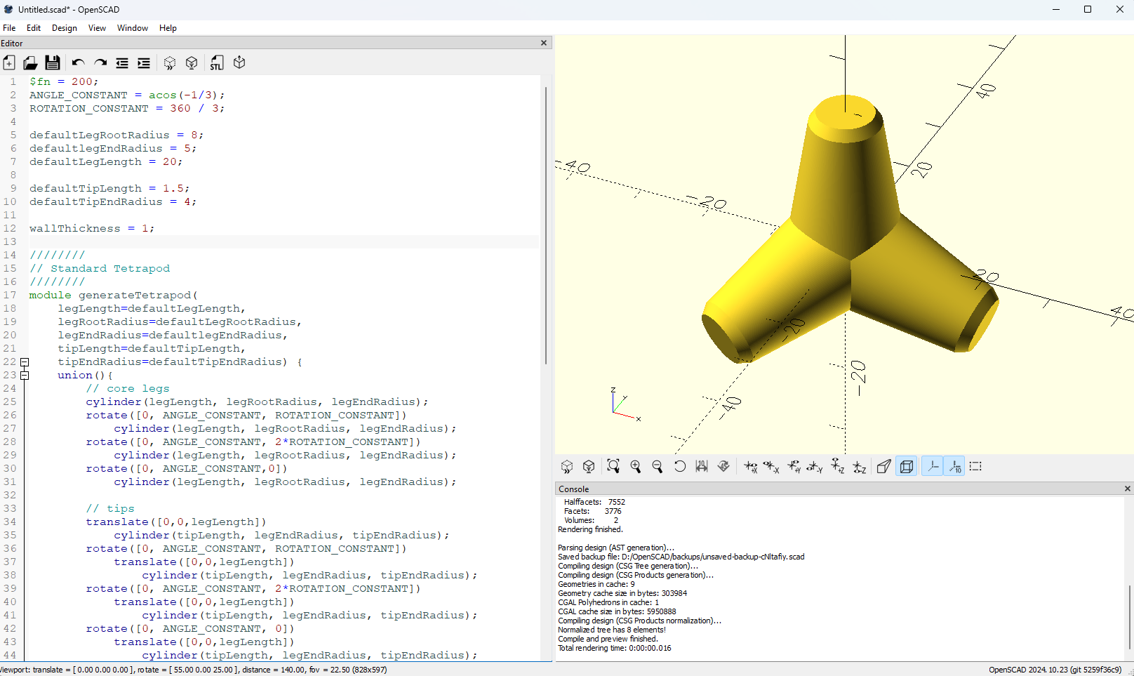 Parametric Tetrapod in OpenSCAD