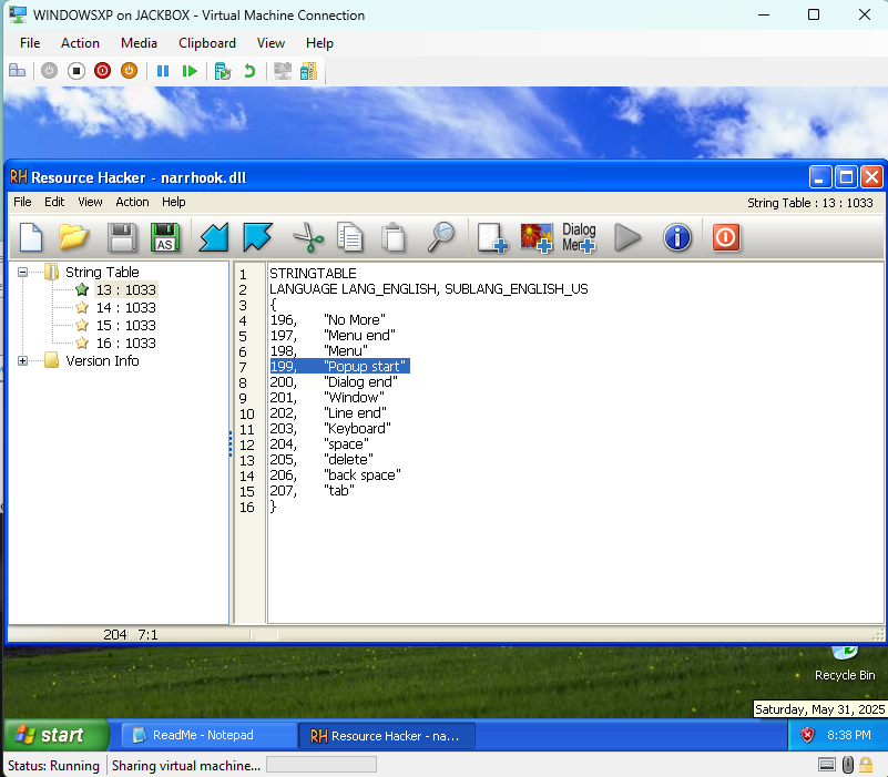 I swore Narrator on Windows XP was saying “pothole,” as in “pothole start” and “pothole menu end” – maybe even something closer to “pothole-p” with a plosive at the end. I finally got fedup and cracked open an XP VM and ResHacker, and sure enough, it’s saying “popup” with the world’s worst diction.